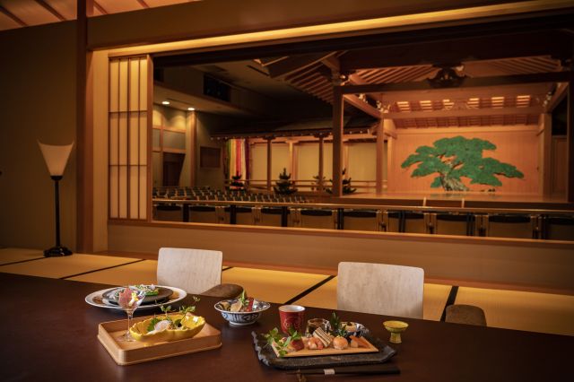 料亭「セルリアンタワー数寄屋」の季節の会席料理付きで「定期能七月-喜多流-」を鑑賞できる"特別観覧席"のチケットを数量限定で販売します。伝統的な建築様式である数寄屋造りの大広間で、和のお食事とお飲み物をご堪能後、同室内の壁が開き正面席後ろの数寄屋内上段席から「定期能七月-喜多流-」をお楽しみいただけます。